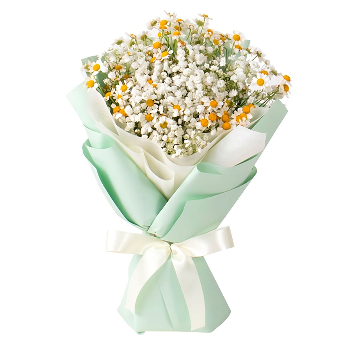 | Состав | Гипсофила, Ромашки, Танацетум |