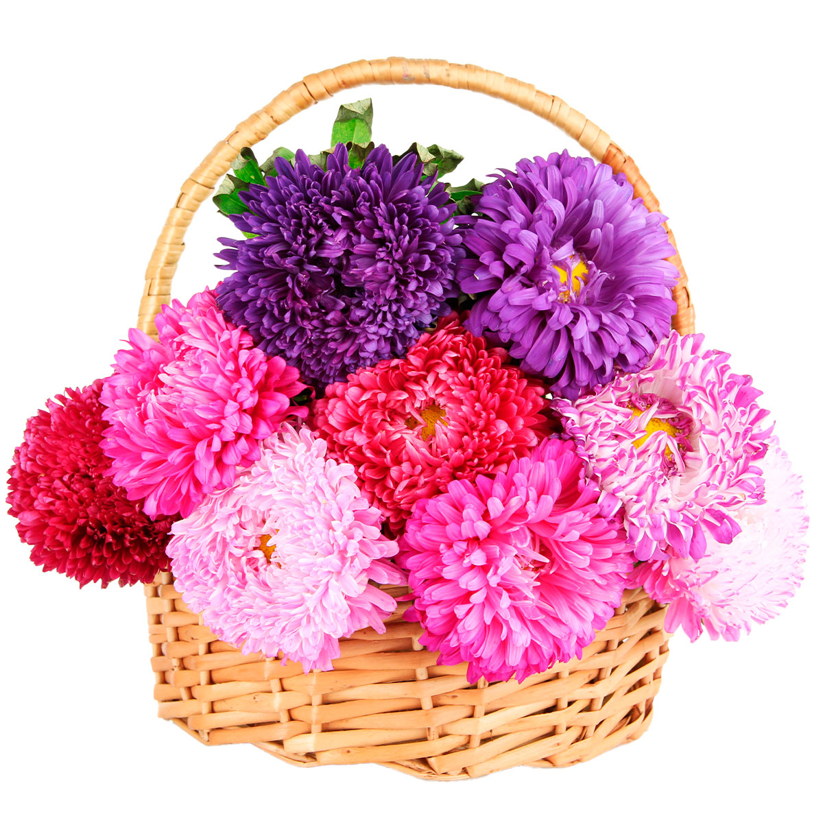 Астра розовая, сиреневая и фиолетовая. Упаковка (Корзина, оазис, ящик).