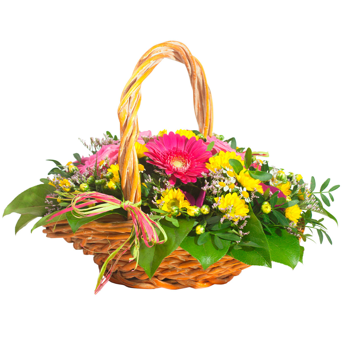 Корзина с цветами «Праздник радуги» с доставкой по г Приморско-Ахтарск: вы можете заказать букет в цветочном гипермаркете «Флормания» по цене от 3499 руб.