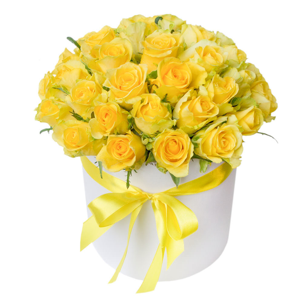 Цветы в коробке «Желтые Розы» с доставкой по г Приморско-Ахтарск: вы можете купить букет в цветочном интернет-магазине «Флормания» по цене от 2799 руб.