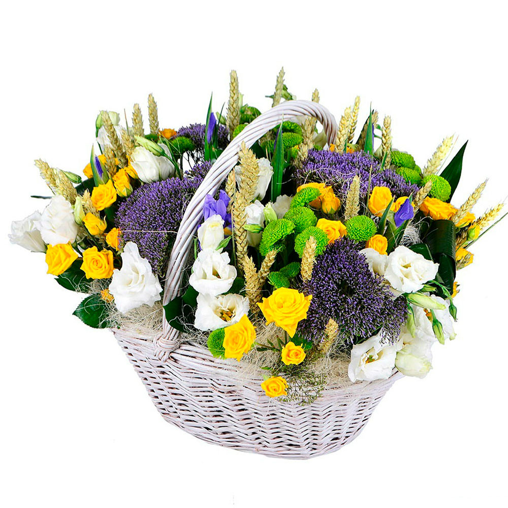 Цветы в корзинке «Летняя лужайка» с доставкой по г Приморско-Ахтарск: вы можете купить букет в цветочном интернет-магазине «Флормания» по цене от 3499 руб.